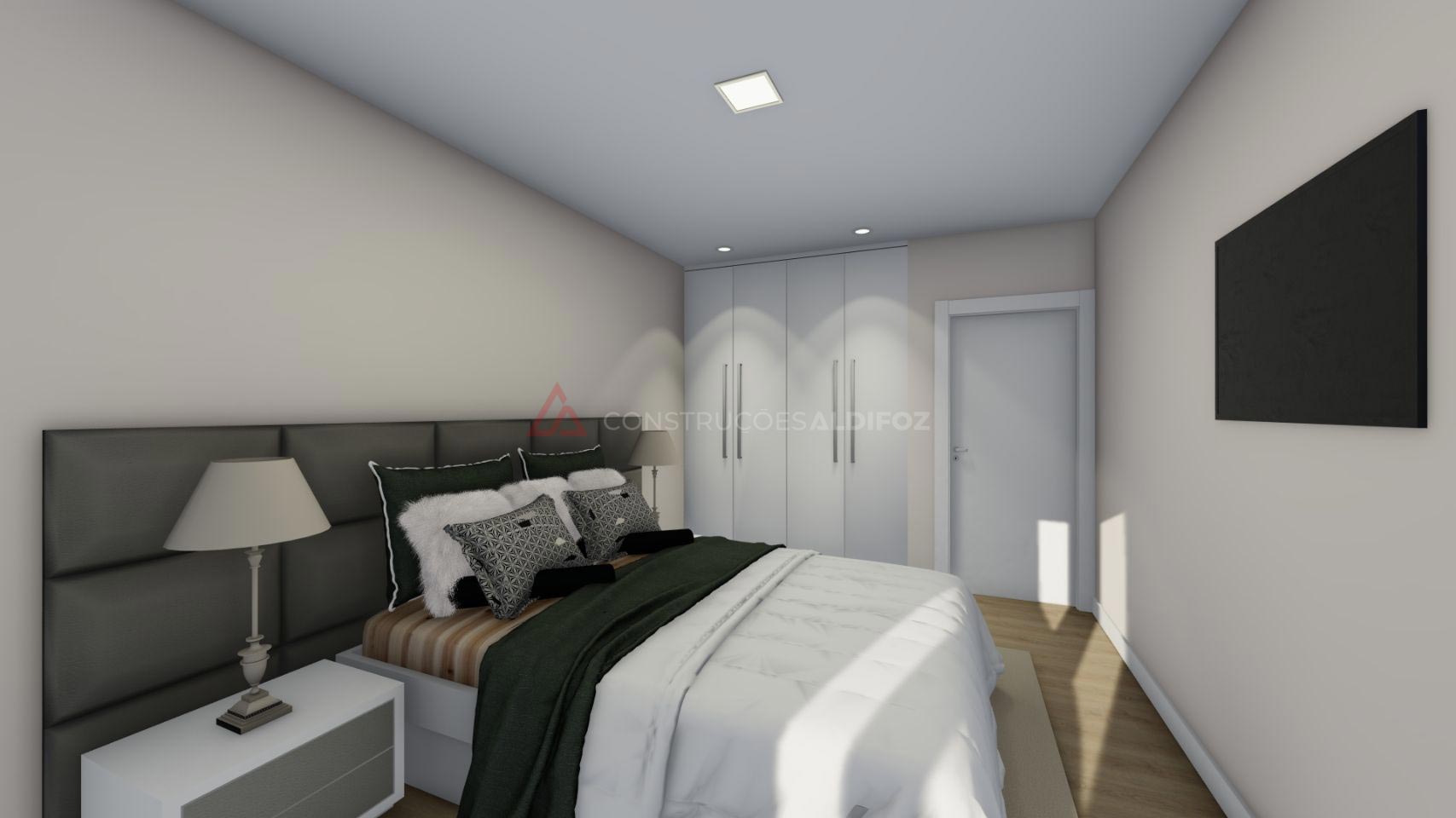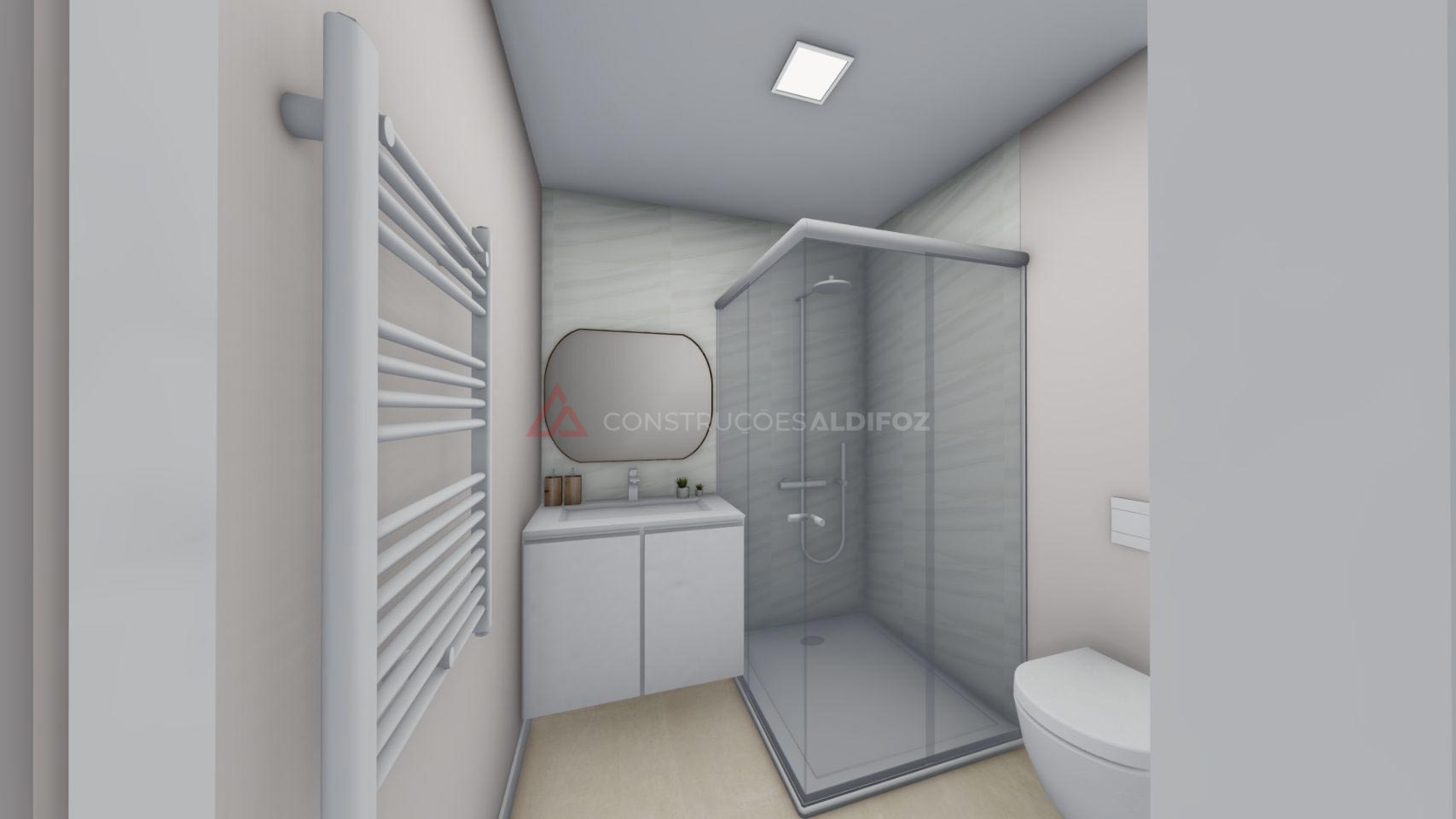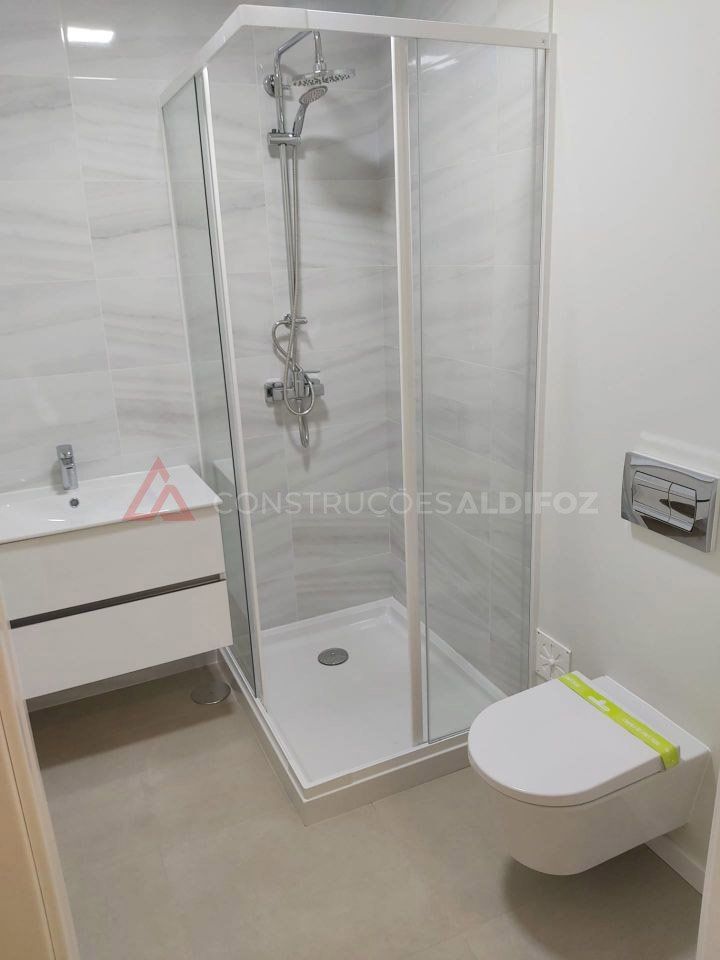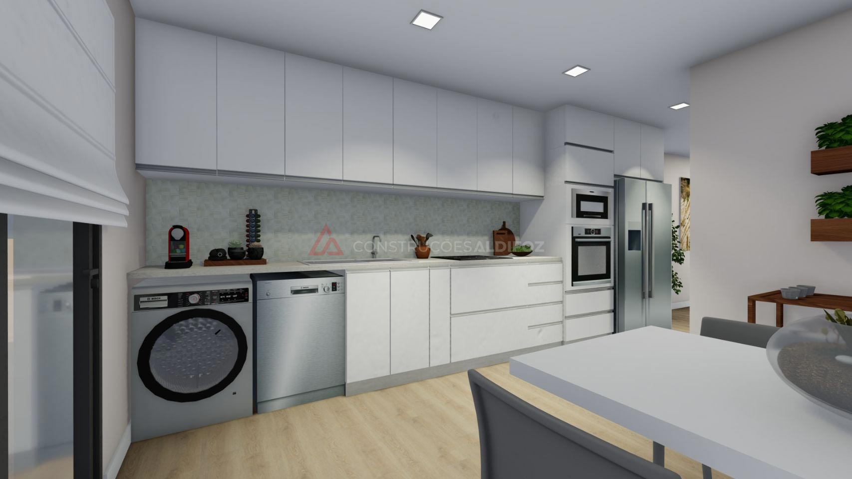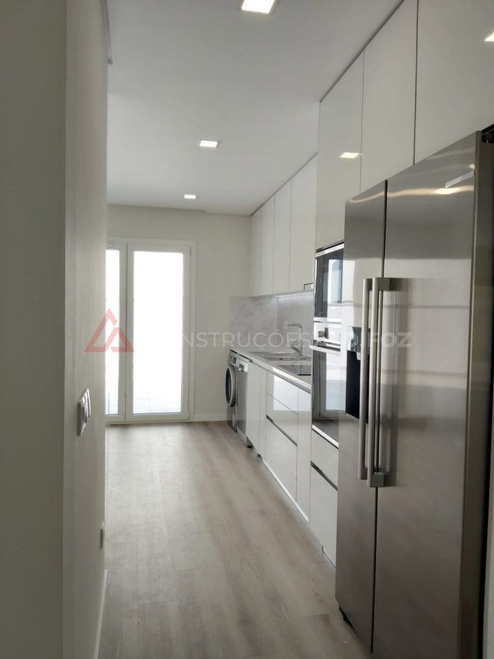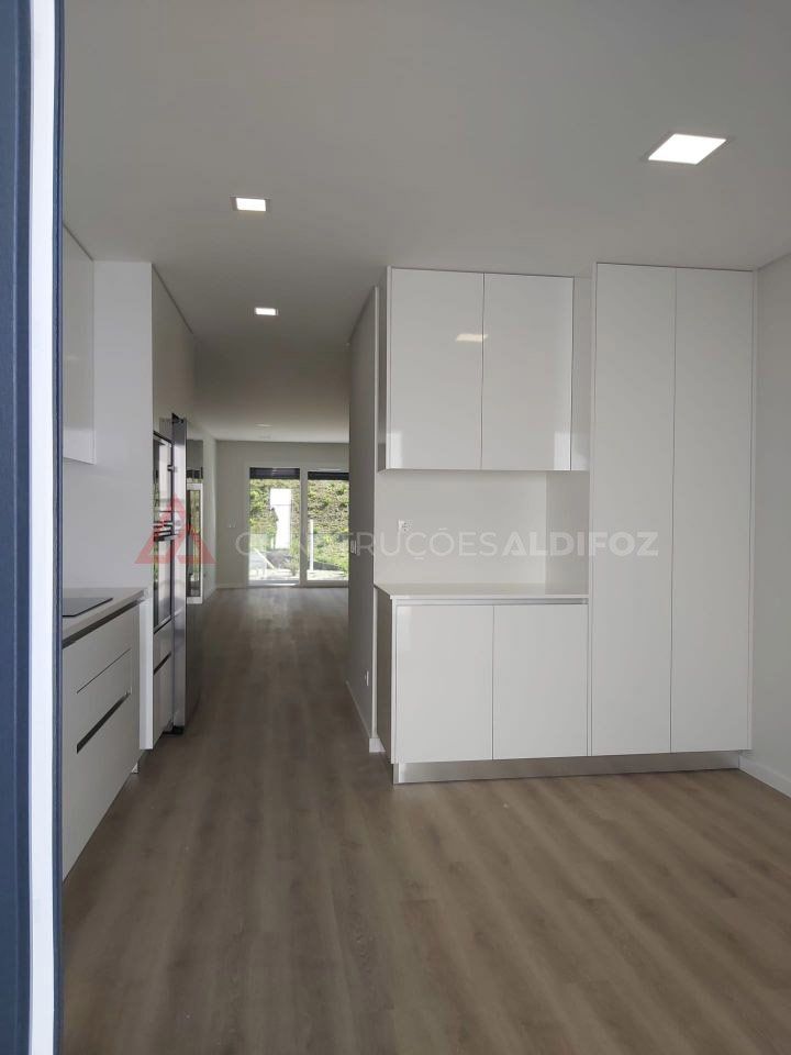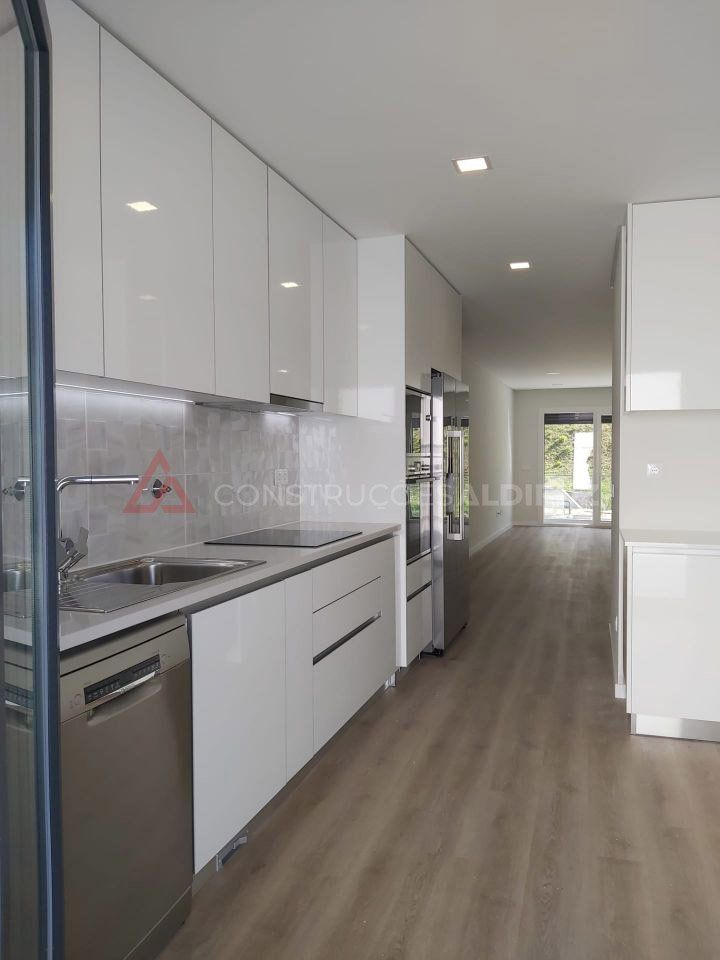 - Carpintaria em termolaminado branco, roupeiros, cozinha e casas de banho