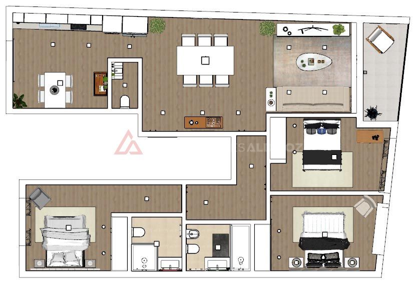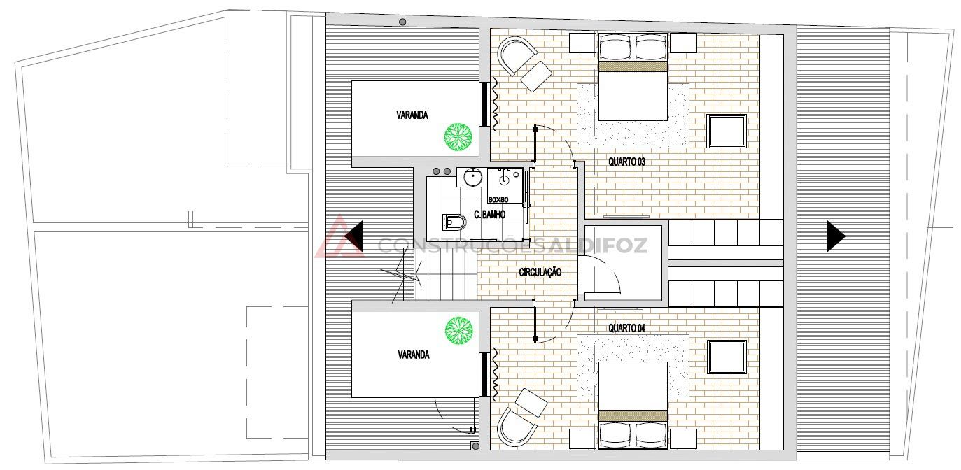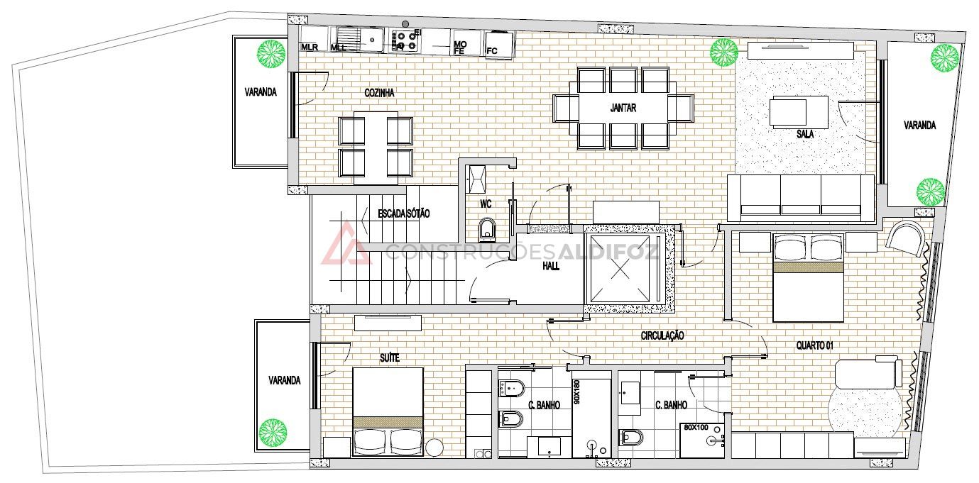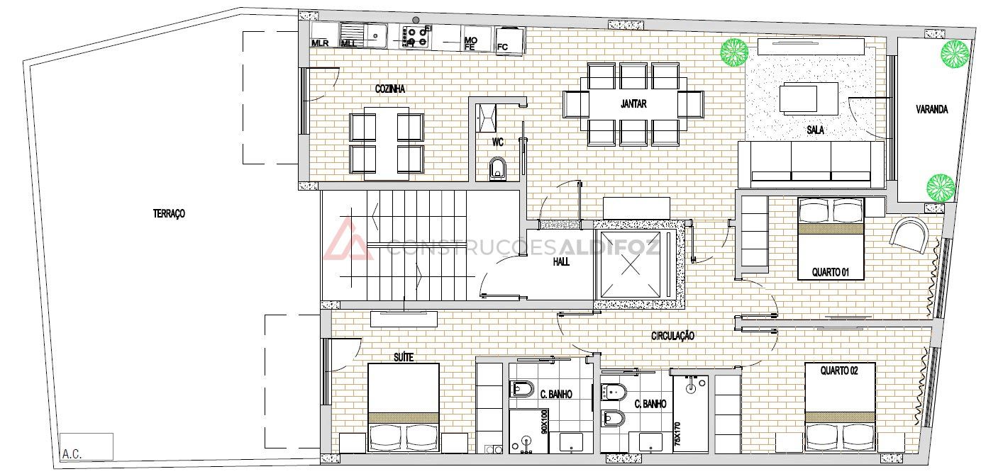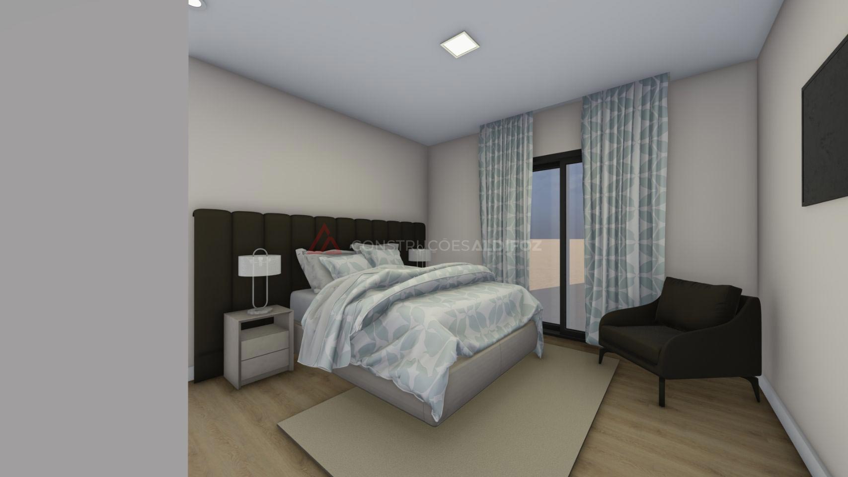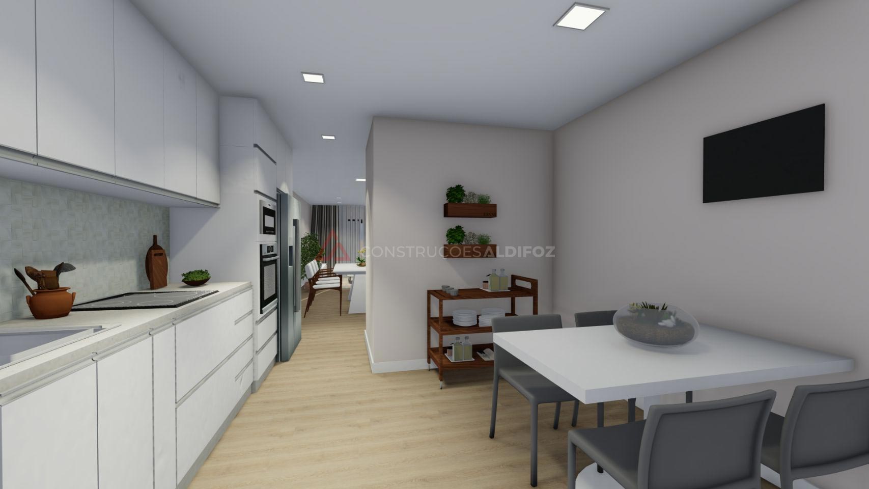 - Carpintaria em termolaminado branco, roupeiros, cozinha e casas de banho